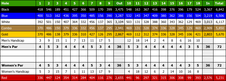 Let us know what you think about the site we would love to hear from you. It was renovated in 1999 by Ron Garl and the irrigation system upgradedThe course was in excellent conditionIt does require some shot-making skills to score well but it is a totally fair golf course. Home Scorecard Daily Fees Annual Fees LeaguesEvents Contact Tee Times.